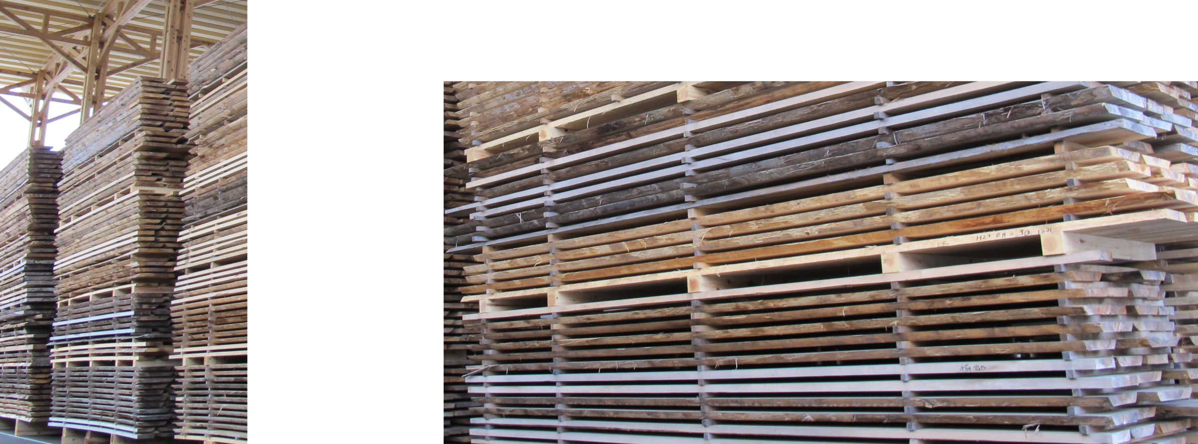 樹齢を重ねた高齢の木になると年輪の間隔が更に狭く細かくなり、若く密度の低い木は木目の巾が広くなります。色合いは赤身と白太が約半分ずつの源平(赤白)が一般的ですが、高齢級の原木からは赤身(心材)が多く含まれる柾目が製材できます。